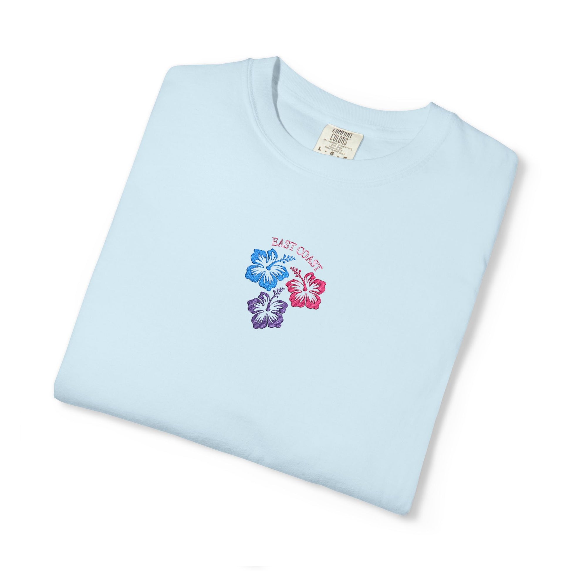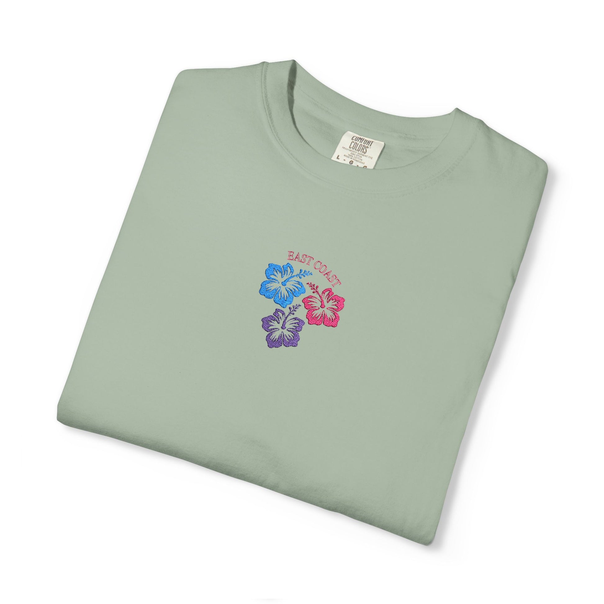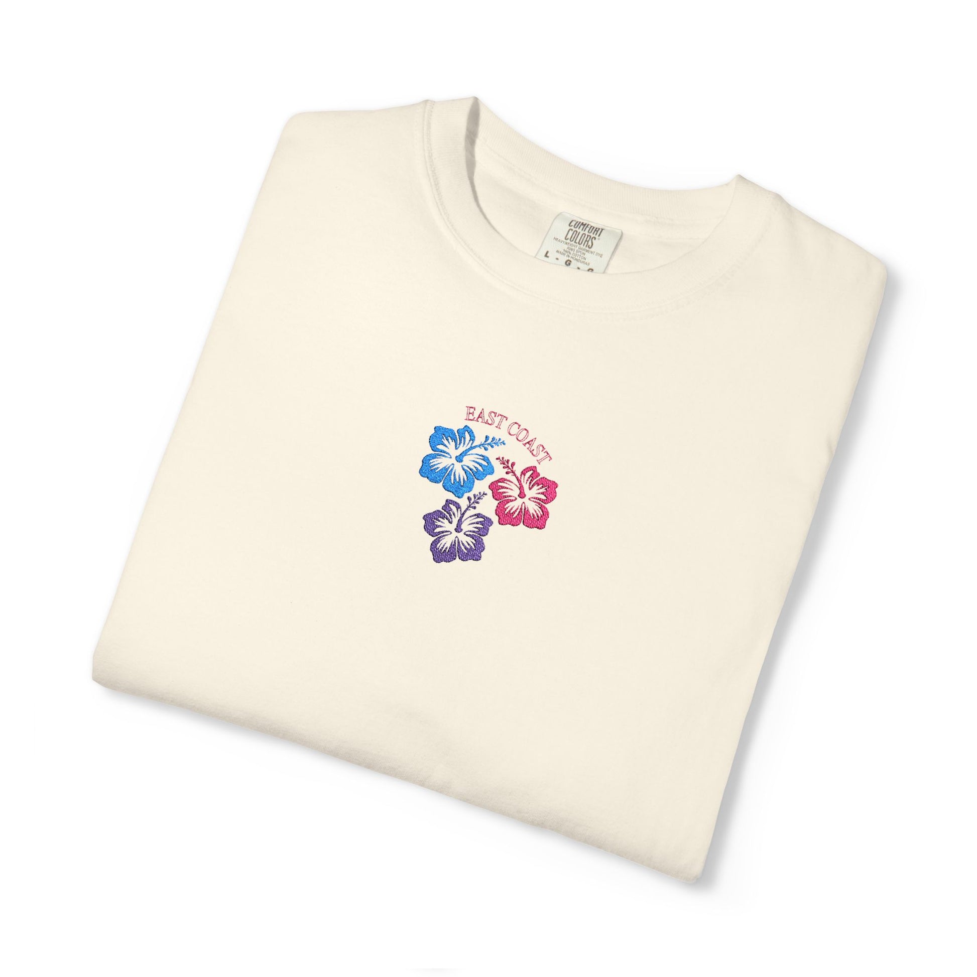 Soft, broken-in, and easy to love, this garment-dyed tee features embroidered hibiscus details on vintage Comfort Colors fabric. The heavyweight cotton drapes effortlessly for all-day comfort—ideal for beach walks, slow starts, and relaxed days. With wear, the color fades naturally, making each tee uniquely yours.
